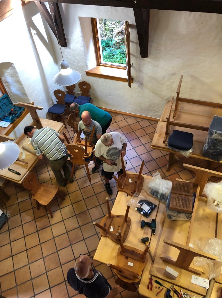 Ganz herzlichen Dank an die Truppe der DVT (Dorf-Verschönerungs-Team), die diese Woche die neuen Stuhlkissen montiert haben. Damit ist diese Ehrenamtsförderung, die die LandFrauen Dexheim Ende 2020 genehmigt bekommen haben, so gut wie abgeschlossen und wir freuen uns schon auf die erste Veranstaltung, bei der die neuen, bequemen Stühle zum Einsatz kommen!
